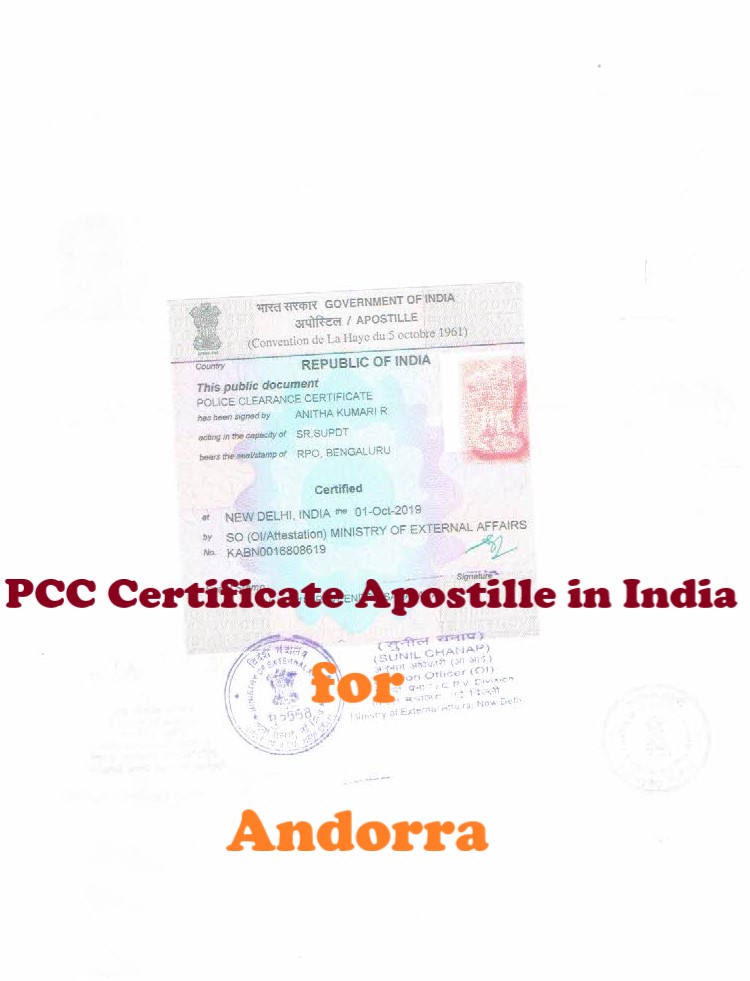 On the other hand, the Police Clearance Certificate /PCC Apostille for Andorra will be completed from Ministry of External Affairs /MEA, Government of India directly, when the PCC /No Criminal Record Certificate has issued from Regional Passport Office /RPO, India or issued from Indian Diplomatic Mission in Andorra.
