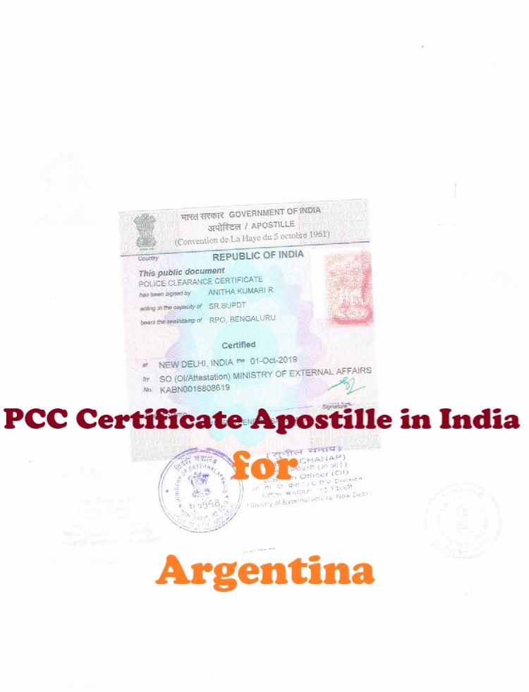 On the other hand, the Police Clearance Certificate /PCC Apostille for Argentina will be completed from Ministry of External Affairs /MEA, Government of India directly, when the PCC /No Criminal Record Certificate has issued from Regional Passport Office /RPO, India or issued from Indian Diplomatic Mission in Argentina.