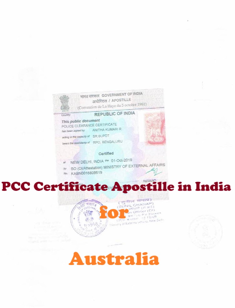 On the other hand, the Police Clearance Certificate /PCC Apostille for Australia will be completed from Ministry of External Affairs /MEA, Government of India directly, when the PCC /No Criminal Record Certificate has issued from Regional Passport Office /RPO, India or issued from Indian Diplomatic Mission in Australia.