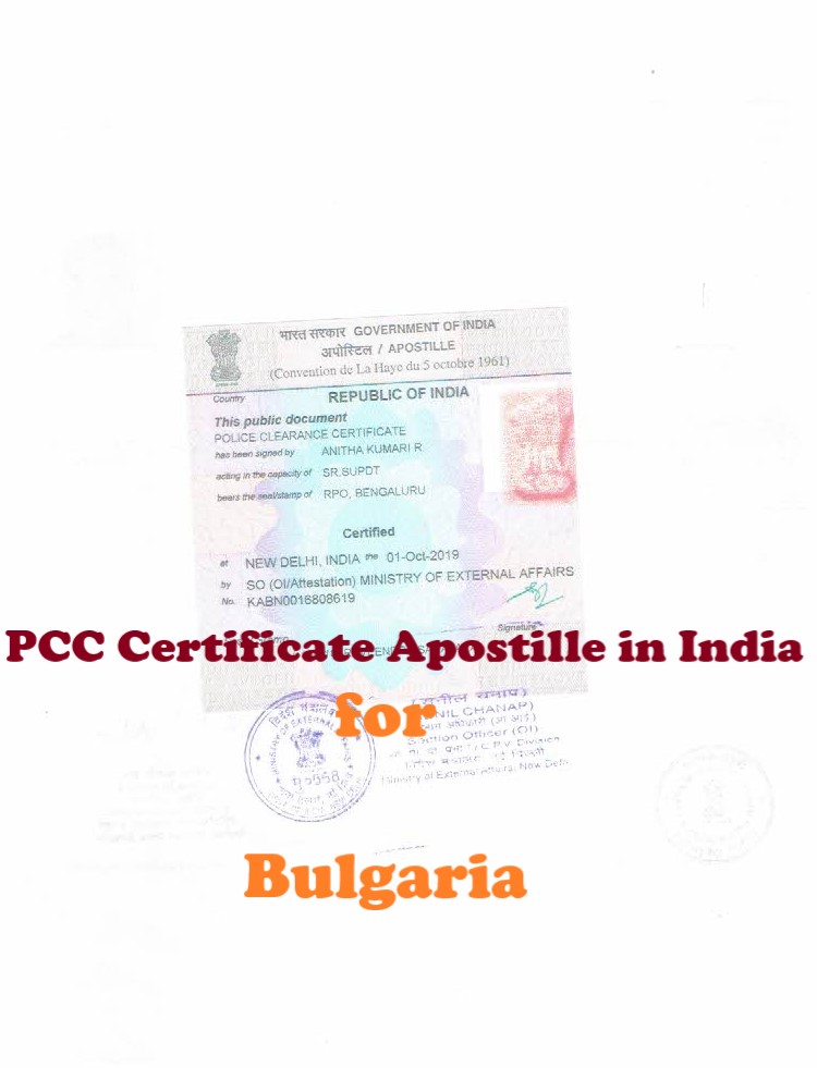 On the other hand, the Police Clearance Certificate /PCC Apostille for Bulgaria will be completed from Ministry of External Affairs /MEA, Government of India directly, when the PCC /No Criminal Record Certificate has issued from Regional Passport Office /RPO, India or issued from Indian Diplomatic Mission in Bulgaria.