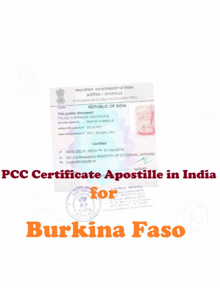 On the other hand, the Police Clearance Certificate /PCC Apostille for Burkina Faso will be completed from Ministry of External Affairs /MEA, Government of India directly, when the PCC /No Criminal Record Certificate has issued from Regional Passport Office /RPO, India or issued from Indian Diplomatic Mission in Burkina Faso.