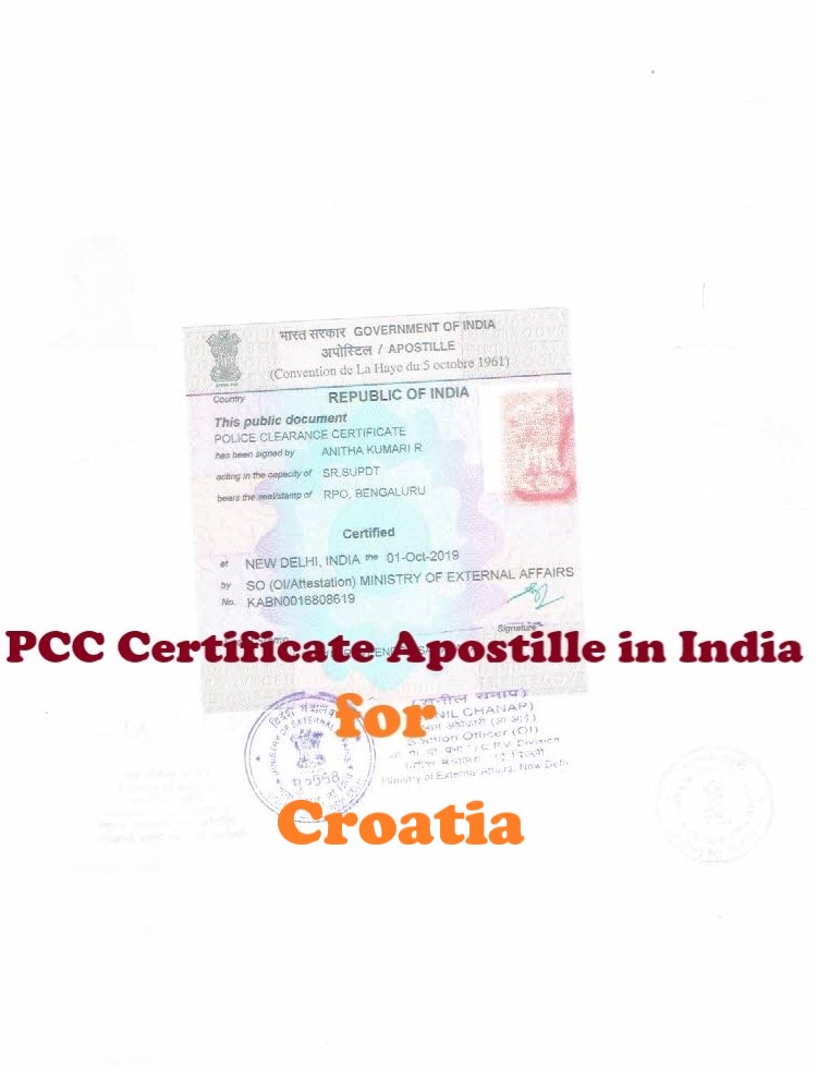 On the other hand, the Police Clearance Certificate /PCC Apostille for Croatia will be completed from Ministry of External Affairs /MEA, Government of India directly, when the PCC /No Criminal Record Certificate has issued from Regional Passport Office /RPO, India or issued from Indian Diplomatic Mission in Croatia.