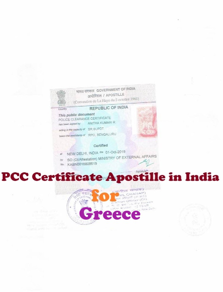 On the other hand, the Police Clearance Certificate /PCC Apostille for Greece will be completed from Ministry of External Affairs /MEA, Government of India directly, when the PCC /No Criminal Record Certificate has issued from Regional Passport Office /RPO, India or issued from Indian Diplomatic Mission in Greece.