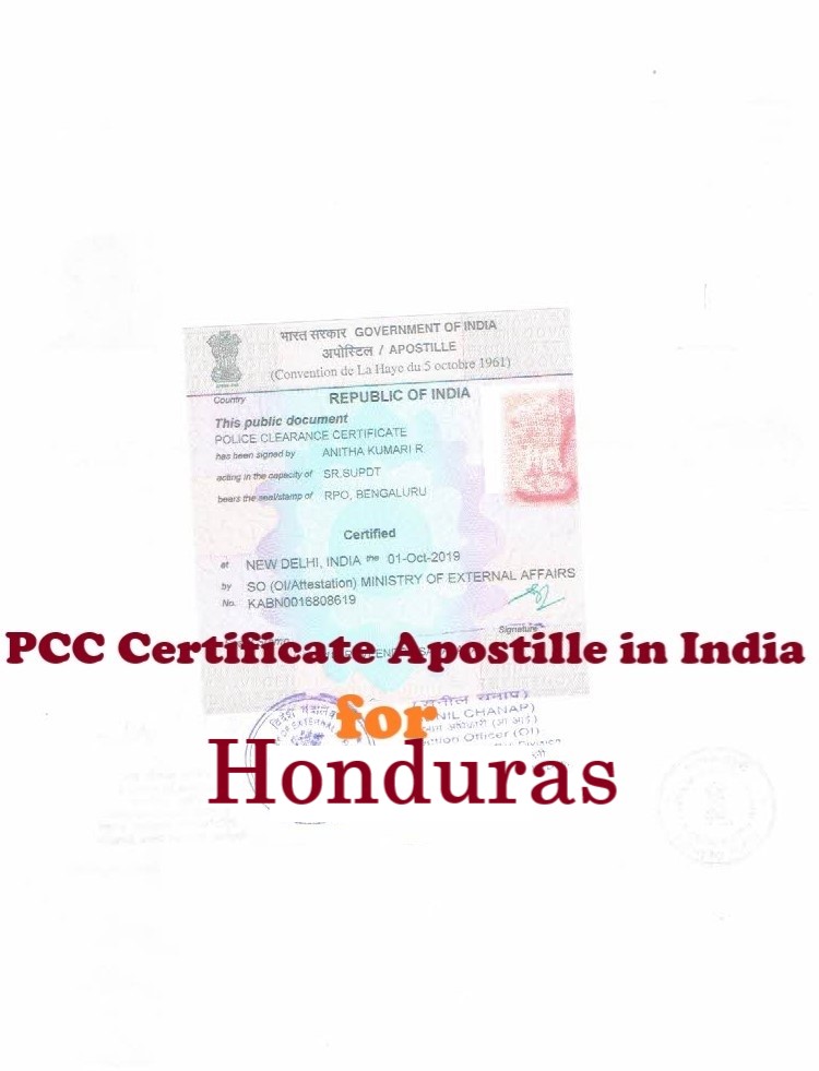On the other hand, the Police Clearance Certificate /PCC Apostille for Honduras will be completed from Ministry of External Affairs /MEA, Government of India directly, when the PCC /No Criminal Record Certificate has issued from Regional Passport Office /RPO, India or issued from Indian Diplomatic Mission in Honduras.