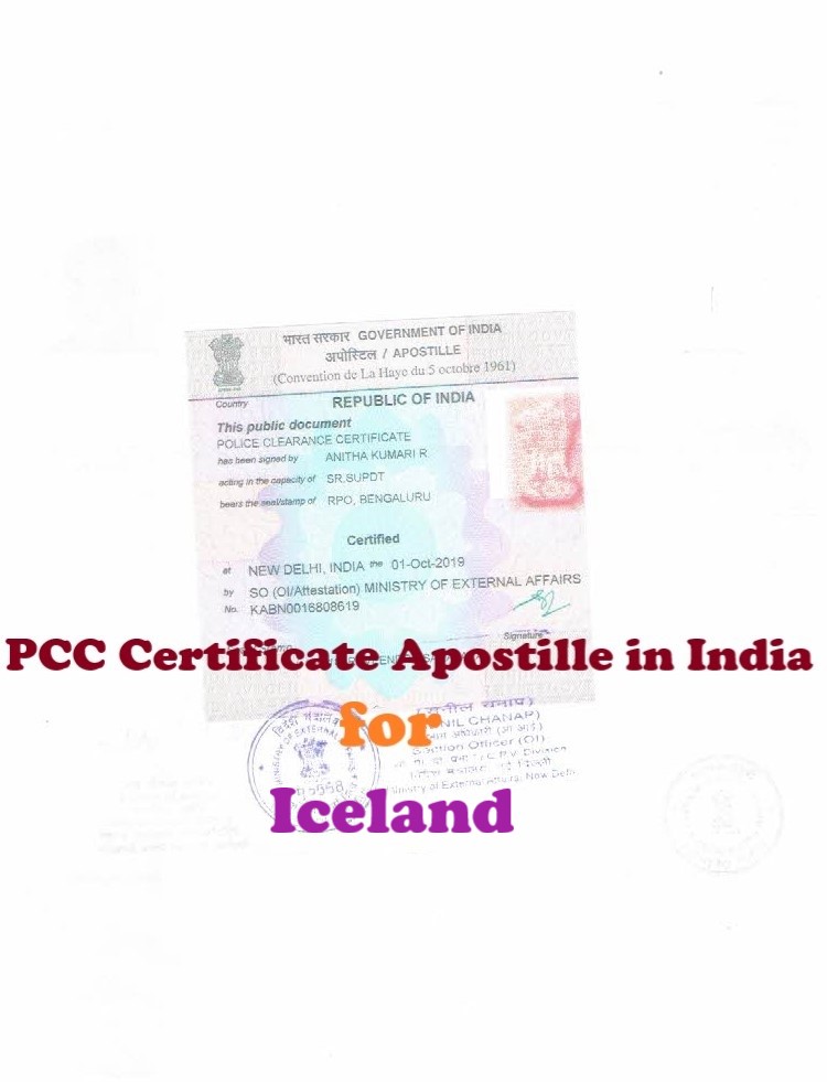 On the other hand, the Police Clearance Certificate /PCC Apostille for Iceland will be completed from Ministry of External Affairs /MEA, Government of India directly, when the PCC /No Criminal Record Certificate has issued from Regional Passport Office /RPO, India or issued from Indian Diplomatic Mission in Iceland.