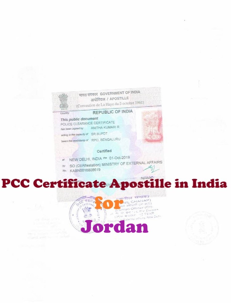 On the other hand, the Police Clearance Certificate /PCC Apostille for Jordan will be completed from Ministry of External Affairs /MEA, Government of India directly, when the PCC /No Criminal Record Certificate has issued from Regional Passport Office /RPO, India or issued from Indian Diplomatic Mission in Jordan.