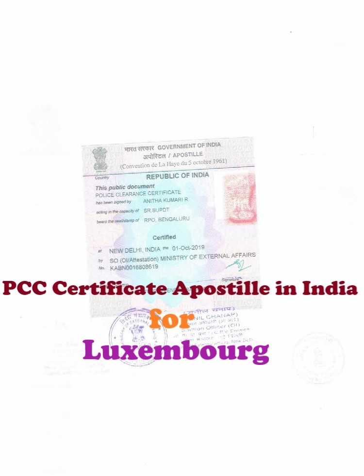 On the other hand, the Police Clearance Certificate /PCC Apostille for Luxembourg will be completed from Ministry of External Affairs /MEA, Government of India directly, when the PCC /No Criminal Record Certificate has issued from Regional Passport Office /RPO, India or issued from Indian Diplomatic Mission in Luxembourg.