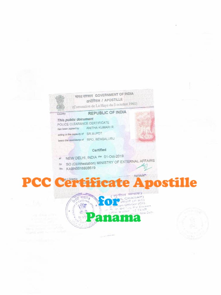 On the other hand, the Police Clearance Certificate /PCC Apostille for Panama will be completed from Ministry of External Affairs /MEA, Government of India directly, when the PCC /No Criminal Record Certificate has issued from Regional Passport Office /RPO, India or issued from Indian Diplomatic Mission in Panama.