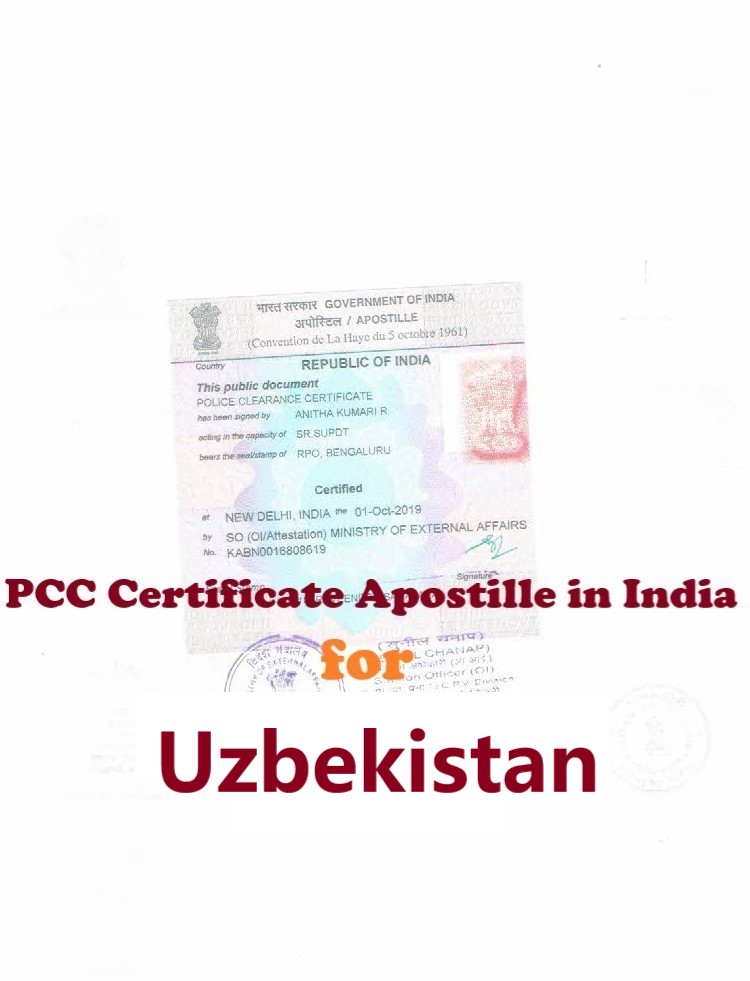 On the other hand, the Police Clearance Certificate /PCC Apostille for Uzbekistan will be completed from Ministry of External Affairs /MEA, Government of India directly, when the PCC /No Criminal Record Certificate has issued from Regional Passport Office /RPO, India or issued from Indian Diplomatic Mission in Uzbekistan.