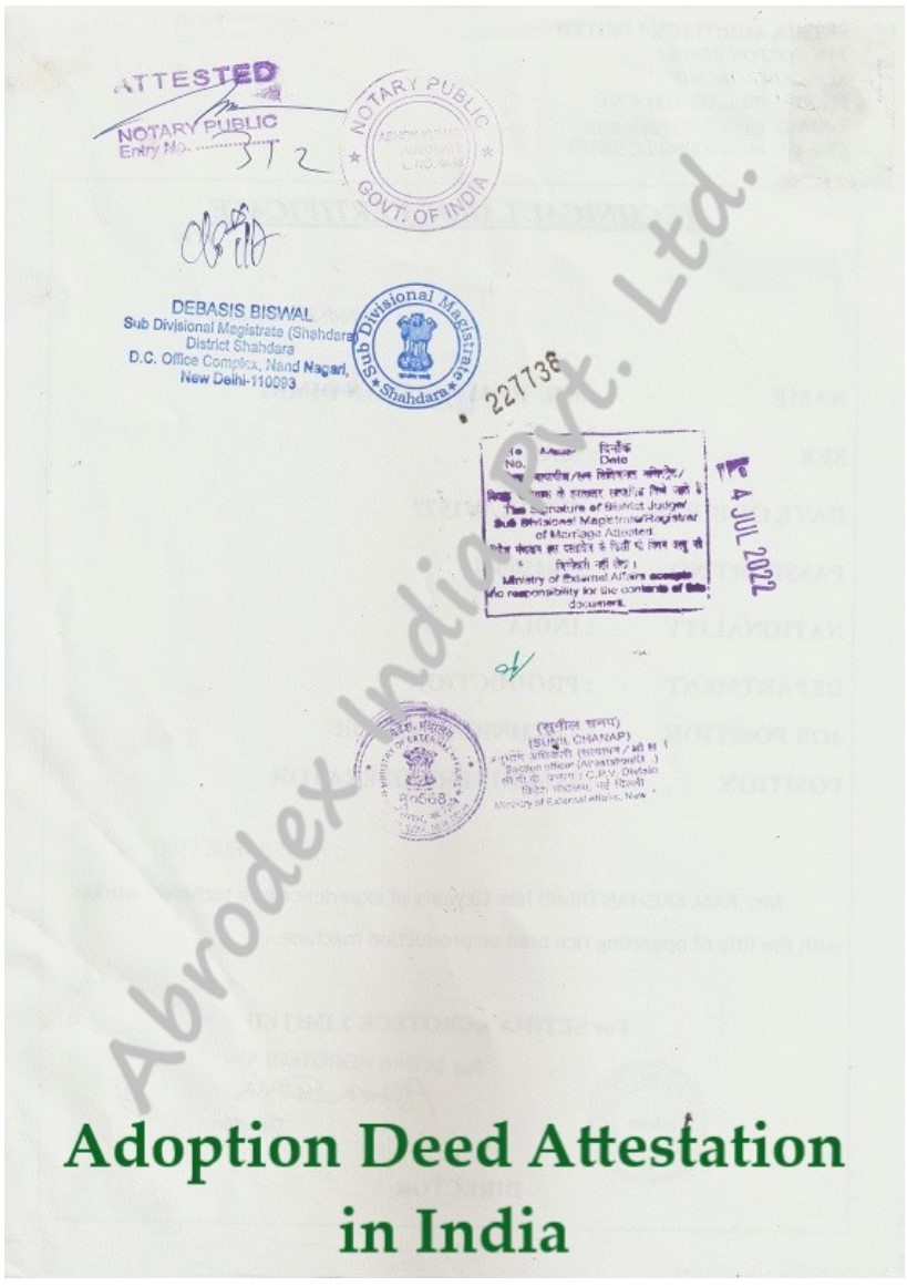 Abrodex India Private Limited is a professional and long experienced Adoption Deed Attestation Agency located in New Delhi, India for various visa process of different countries. We are committed to deliver our best services as per the expectation level of our valued customers. Contact us and get your Adoption Deed Attestation done quickly.