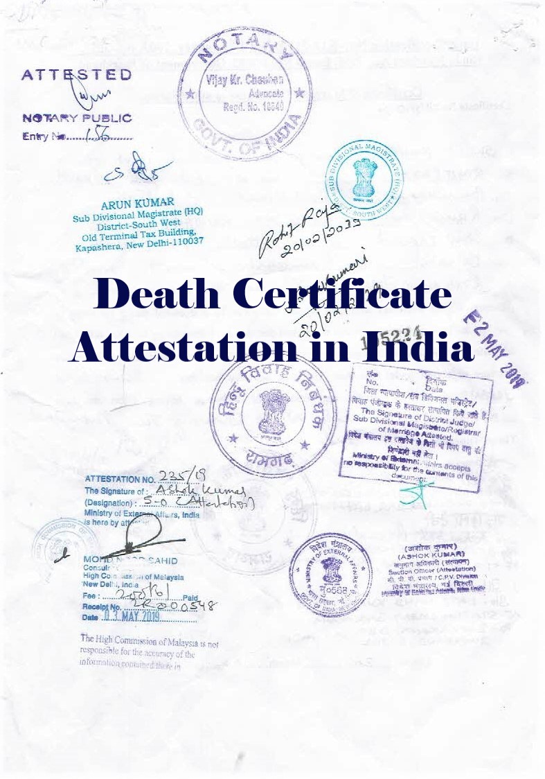 Alternatively, a Death Certificate Attestation from Malaysia Embassy can be completed after the Attestation of Home Department / Mantralaya, Mumbai or the Attestation from Sub Divisional Magistrate (SDM, NCT, Delhi), Attestation from Ministry of External Affairs (MEA), Govt. of India and the Attestation from Notary.