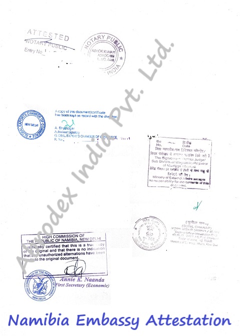 Abrodex India Private Limited is one of the authorized and premier Service providers for School Leaving Certificate Attestation from Namibia Embassy in India. We have more than 10 years of Experience in the field of Certificate Attestation, Authentication, Apostille, Embassy Legalization and Visa Stamping Services. Contact us anytime and get your School Leaving Certificate Attestation from Namibia Embassy done with a hassle-free and pocket-friendly manner.
