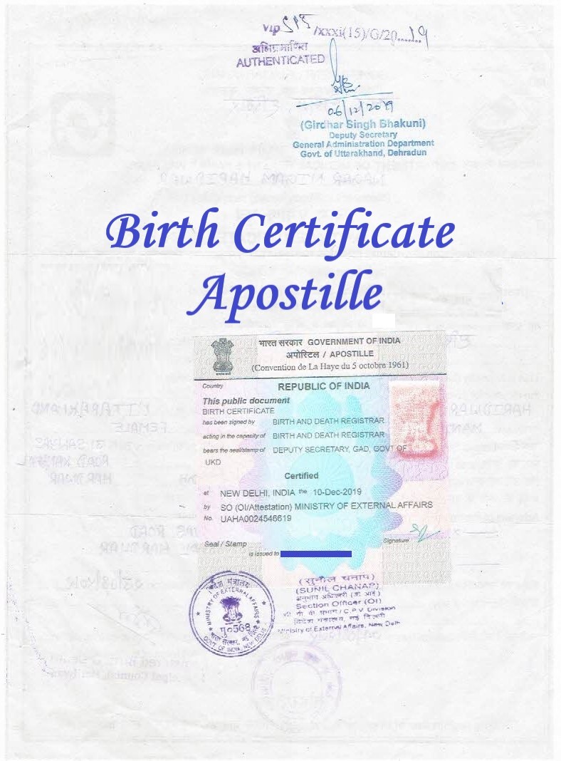 As per main process, A Birth Certificate Apostille for Zambia will be done from Ministry of External Affairs (MEA), Govt. of India after the Attestation of State level Attestation department and the Attestation from Notary.