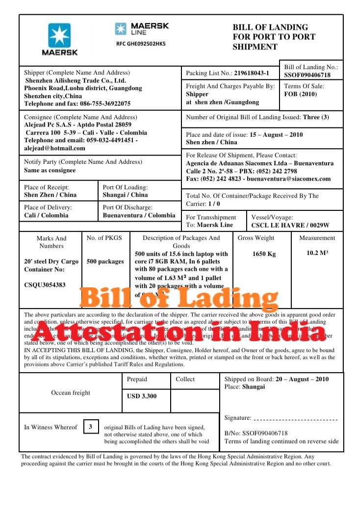 When an Indian export / trading company or even an individual starting export to Canada, then they have to complete the Bill of Lading Attestation from Canada Embassy or Consulate in India. The Bill of Lading Attestation is required for Custom Clearance purposes as well as it is a proof of shipment delivery to the correct destination. There are couple of different types of agencies / carriers / Logistics Companies etc. who provide Bill of Lading for Export.