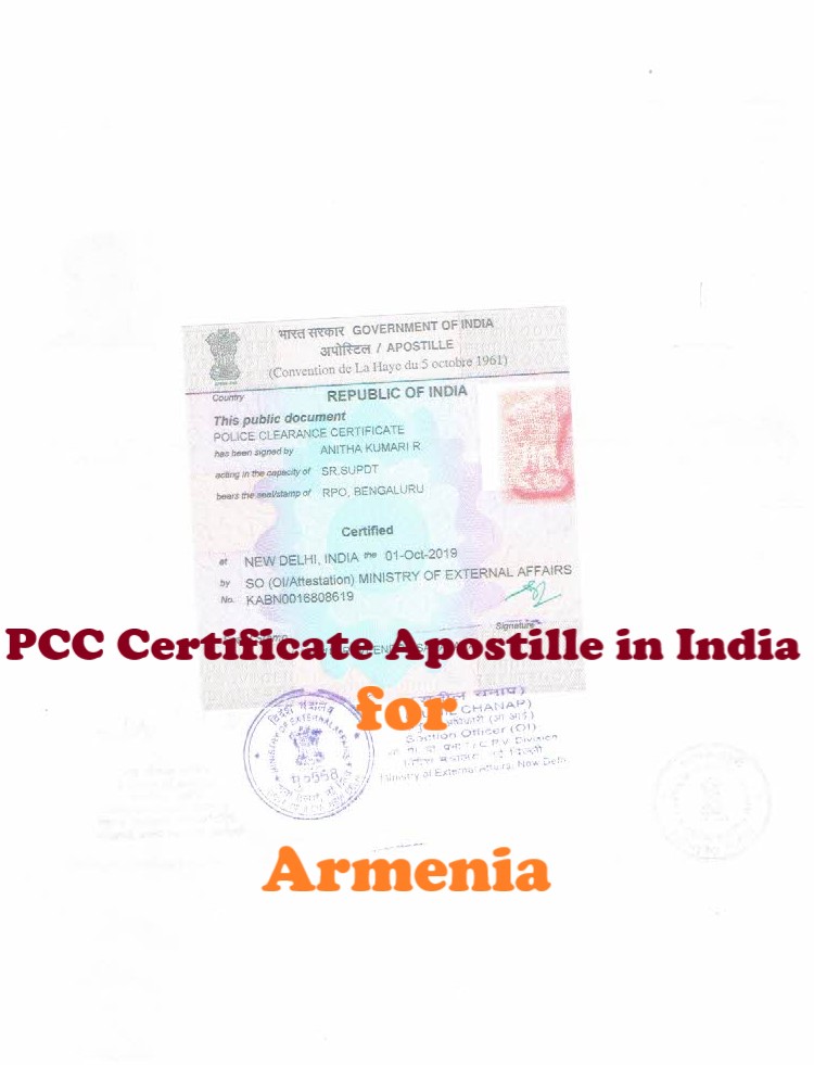 On the other hand, the Police Clearance Certificate /PCC Apostille for Armenia will be completed from Ministry of External Affairs /MEA, Government of India directly, when the PCC /No Criminal Record Certificate has issued from Regional Passport Office /RPO, India or issued from Indian Diplomatic Mission in Armenia.